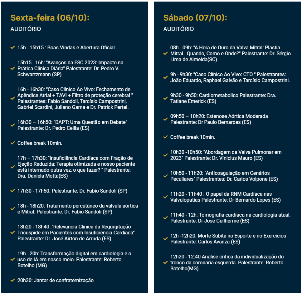 A programação cuidadosamente elaborada engloba uma ampla gama de tópicos cardíacos relevantes, apresentados por gigantes no campo. Desde a abertura enriquecedora na sexta-feira até a conclusão memorável no sábado, cada momento é projetado para inspirar, conectar e transformar a medicina cardíaca.
