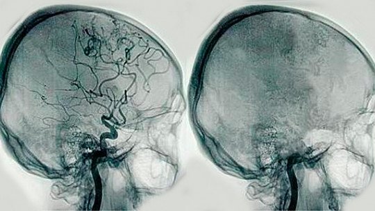 Um dos tratamentos usados é a embolização, onde é feito uma punção na artéria femoral (perna) e introduzido um cateter pela artéria aorta até a base do pescoço.